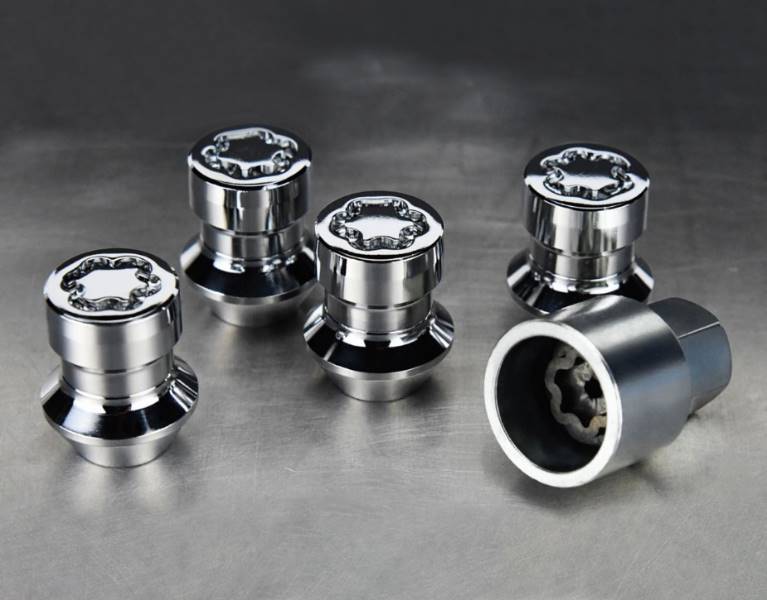ساعد في حماية عجلاتك المعدنية من السرقة. نمط المقبض الفريد يجعل هذه الأقفال مقاومة للعبث فعليًا. إنهاء كروم. (مجموعة من 4 أقفال).