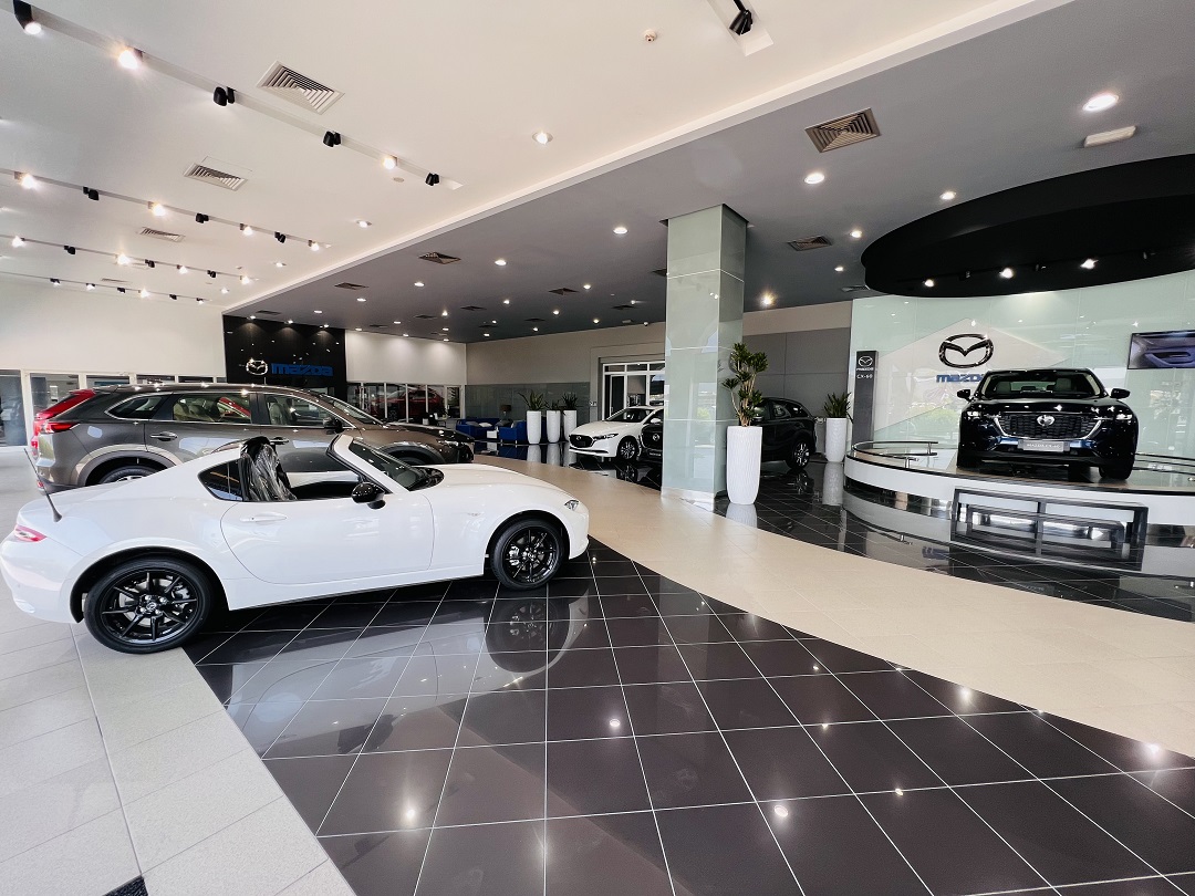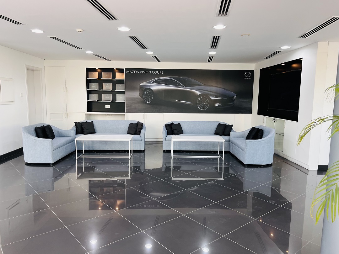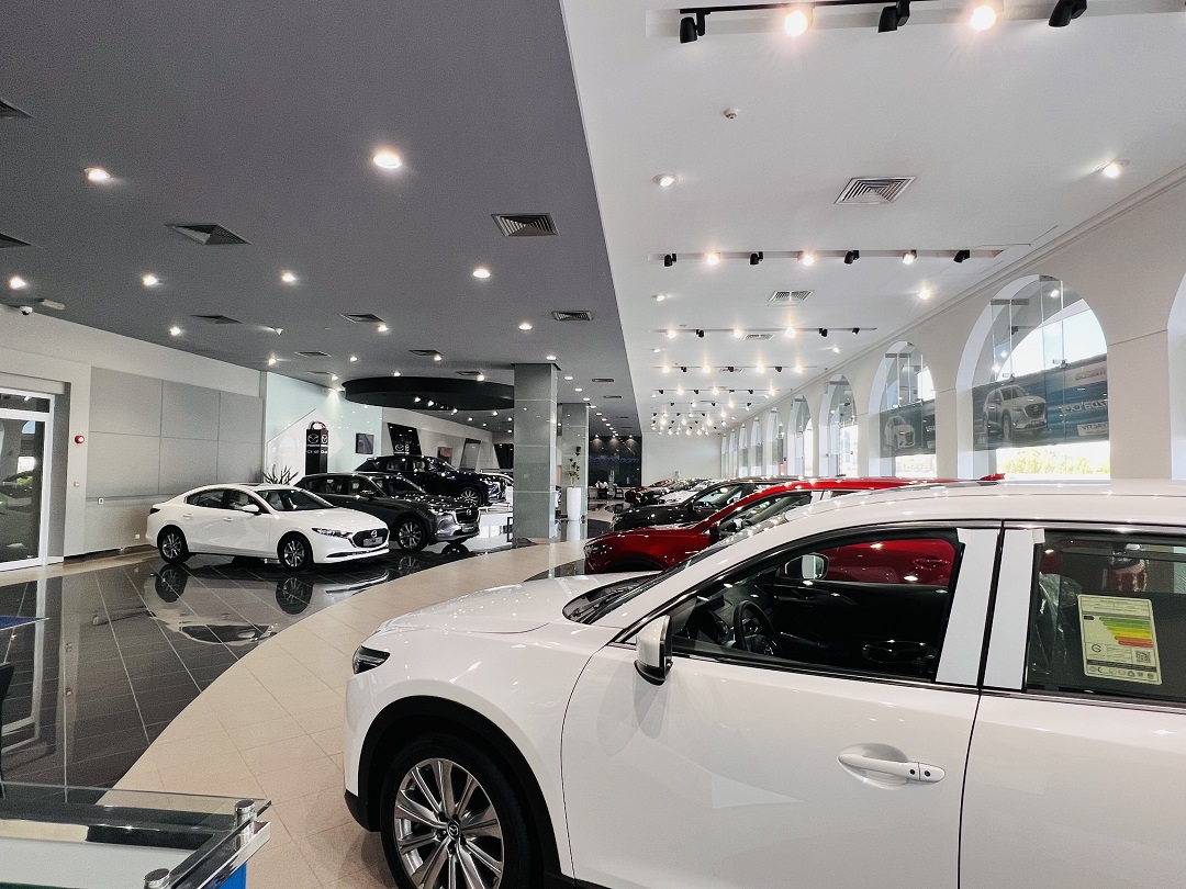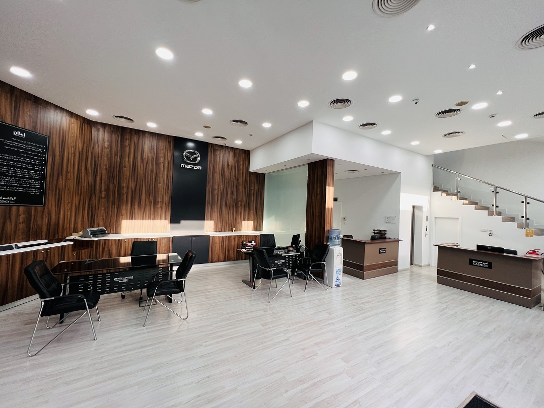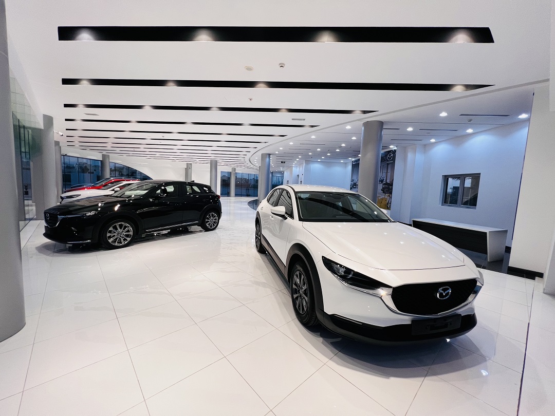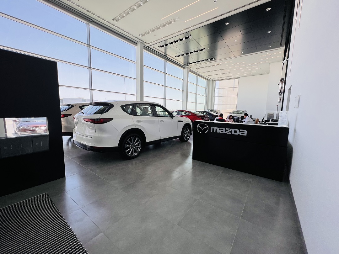 معرض مازدا – صالة عرض حديثة بمساحة 3753 متر مربع مجهزة لعرض تجربة يابانية مميزة لزبائن مازدا.