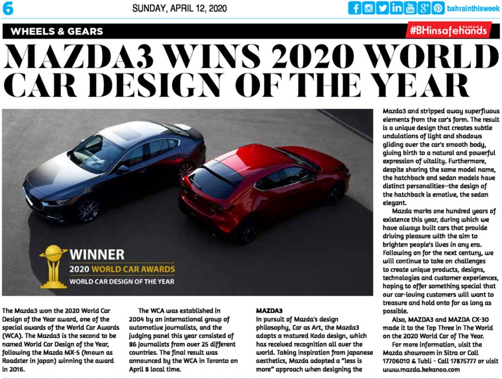 هيروشيما، اليابان - فازت مازدا3 بجائزة أفضل تصميم للسيارات لعام 2020، وهي إحدى الجوائز الخاصة لجوائز السيارات العالمية (WCA). مازدا3 هي ثاني سيارة تحوز على لقب سيارة العالم للعام، بعد فوز المازدا MX-5 (المعروفة باسم Roadster في اليابان) بالجائزة في عام 2016. تم تأسيس الWCA في عام 2004 من قبل مجموعة دولية من صحفيي السيارات، وتألفت لجنة التحكيم هذا العام من 86 صحفيًا من أكثر من 25 دولة مختلفة. تم الإعلان عن النتيجة النهائية من قبل WCA في تورونتو يوم 8 أبريل بالتوقيت المحلي. سعيًا وراء فلسفة تصميم مازدا، السيارة تحفة فنية، تتبنى مازدا 3 تصميم كودو الناضج، الذي نال التقدير في جميع أنحاء العالم. مستوحاة من الجماليات اليابانية، اعتمدت مازدا نهج "الأقل، أكثر" عند تصميم مازدا 3 وجردت العناصر غير الضرورية من شكل السيارة. والنتيجة هي تصميم فريد من نوعه يخلق تموجات خفيفة للضوء والظلال تنزلق على هيكل السيارة الناعم، مما يولد تعبيرًا طبيعيًا وقويًا عن الحيوية. علاوة على ذلك، على الرغم من مشاركة نفس اسم النموذج، فإن طرازات هاتشباك وسيدان لها شخصيات مميزة - تصميم هاتشباك مثير للعاطفة، والسيدان أنيقة. في هذه السنة، تحتفل مازدا بمرور مائة عام على وجودها، حيث قمنا دائمًا ببناء سيارات توفر متعة القيادة بهدف إضاءة حياة الناس في أي عصر. متجهون للقرن المقبل، سنستمر في مواجهة التحديات لإنشاء منتجات وتصميمات وتقنيات فريدة وتجارب عملاء فريدة، على أمل أن نقدم شيئًا خاصًا يريد عملاؤنا المحبون للسيارة الإحتفاظ به لأطول فترة ممكنة. كما أن مازدا 3، ومازدا CX-30 وصلتا إلى المراكز الثلاث الأولى في العالم في السيارات العالمية لعام 2020.